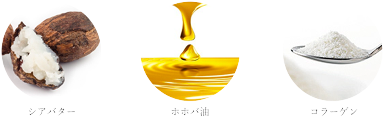 上質なシアバター、ホホバ油、コラーゲンなどの贅沢な保湿成分が、加齢や乾燥、紫外線などでダメージを受けた角質層に潤いを与えます。